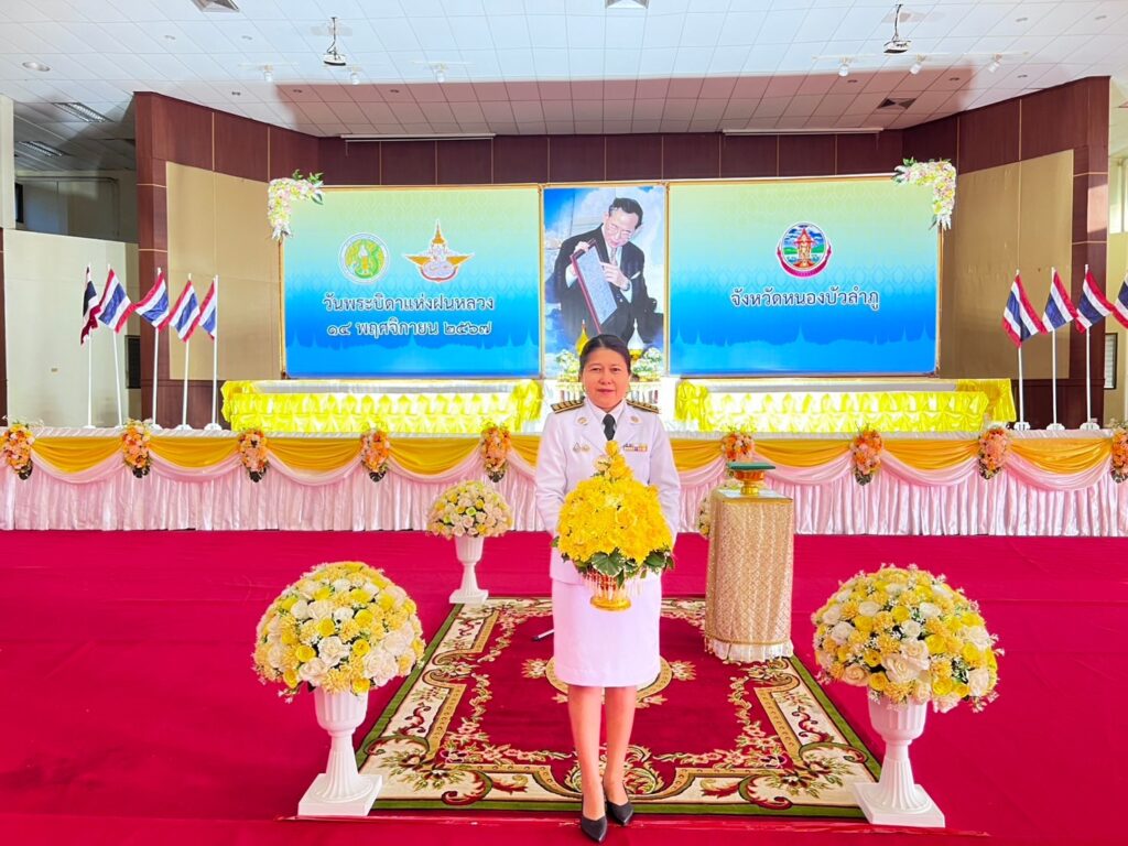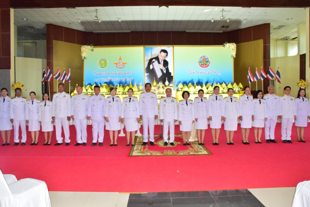 วันพฤหัสบดีที่ 14 พฤศจิกายน 2567 เวลา 07.00 น. นางสาวสุชาดารัช โพธิคลัง หัวหน้าสำนักงานกองทุนฟื้นฟูและพัฒนาเกษตรกร สาขาจังหวัดหนองบัวลำภู พร้อมด้วยบุคลากรสำนักงานกองทุนฟื้นฟูฯ ร่วมพิธีวางพานพุ่มดอกไม้สดเนื่องในวันพระบิดาแห่งฝนหลวง ประจำปี 2567 โดยมี นายสุรศักดิ์ อักษรกุล รองผู้ว่าราชการจังหวัดหนองบัวลำภู รักษาราชการแทนผู้ว่าราชการจังหวัดหนองบัวลำภู เป็นประธานในพิธี ณ หอประชุมอนาลโย ศูนย์ราชการจังหวัดหนองบัวลำภู