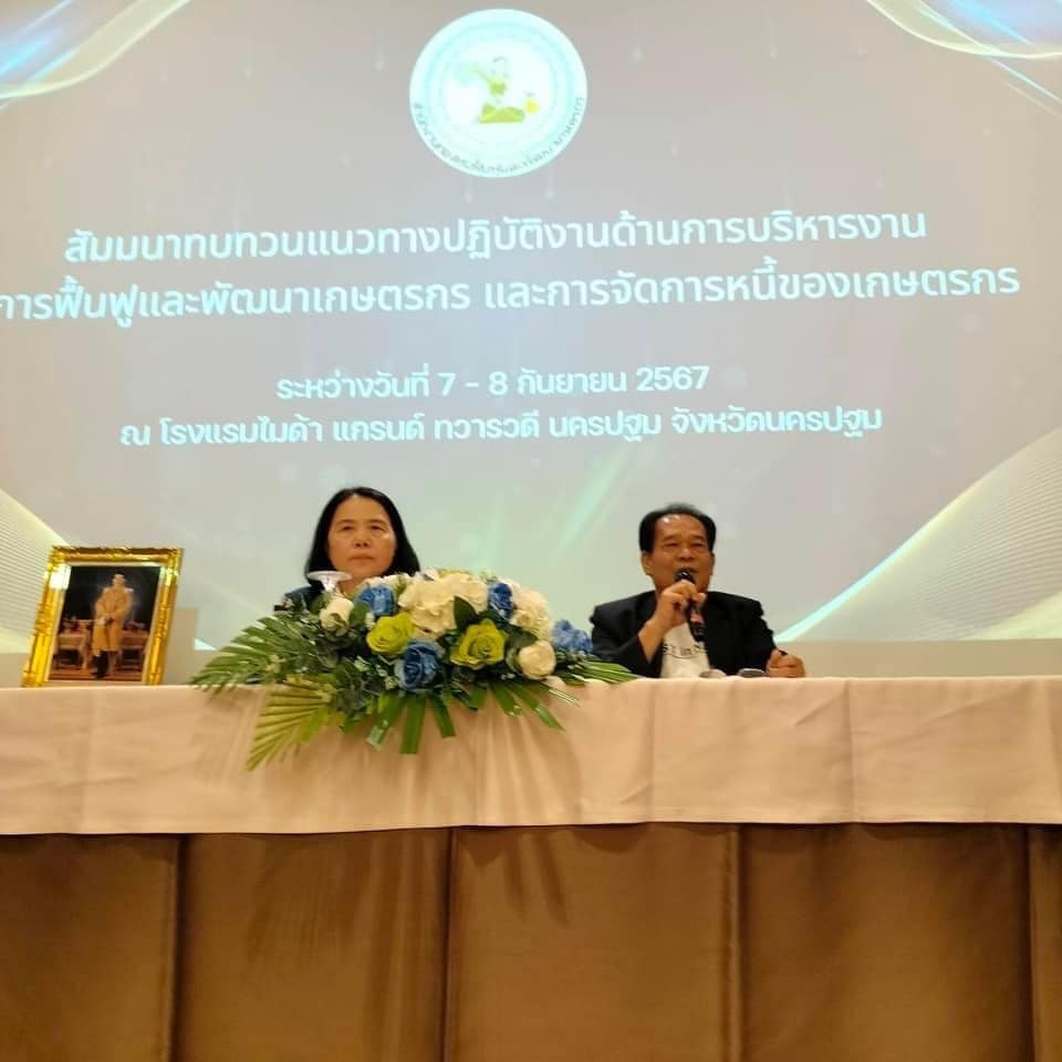 วันที่ 7-8 กันยายน 2567 นางณัติกานต์ บุญเจริญ หัวหน้าสำนักงานกองทุนฟื้นฟูและพัฒนาเกษตรกร สาขาจังหวัดน่าน เข้าร่วมสัมมนาทบทวนแนวทางปฏิบัติงานด้านการบริหารงาน การฟื้นฟูและพัฒนาเกษตรกร และการจัดการหนี้ของเกษตรกร ภายใต้โครงการเสริมสร้างสมรรถนะการปฏิบัติงานตามหน้าที่ของผู้ปฏิบัติงานของสำนักงาน โดยมี นายสไกร พิมพ์บึง เลขาธิการสำนักงานกองทุนฟื้นฟูและพัฒนาเกษตรกร เป็นประธาน ณ โรงแรมไมด้า แกรนด์ ทวารวดี นครปฐม จังหวัดนครปฐม