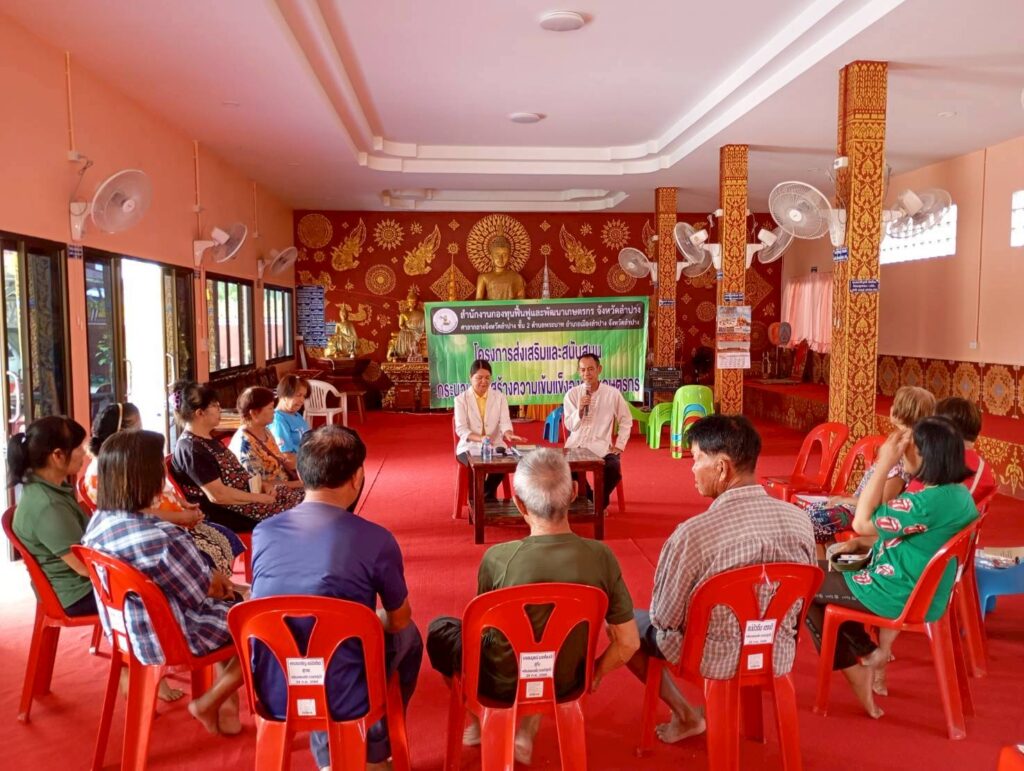 นางพรสวรรค์ สมาน หัวหน้าสำนักงานกองทุนฟื้นฟูและพัฒนาเกษตรกร สาขาจังหวัดลำปาง ดำเนินการลงพื้นที่จัดประชุมตามโครงการส่งเสริมเเละสนับสนุนกระบวนการสร้างความเข้มเเข็ง องค์กรเกษตรกร ปีงบประมาณ 2568 เพื่อสร้างความรู้ความเข้าใจในกระบวนการสร้างความเข้มแข็งให้กับองค์กรเกษตรกรร่วมกันระหว่างสำนักงานกองทุนฟื้นฟูและพัฒนาเกษตรกร อนุกรรมการฯ จังหวัด และสมาชิกองค์กรเกษตรกร “กลุ่มเกษตรกรบ้านจู้ด” โดยมี นายครรชิต วงศ์สุภา เเละ นายอุทัย ตินโย อนุกรรมการกองทุนฟื้นฟูฯ ร่วมประชุมในครั้งนี้ การประชุมจัดขึ้น ณ วัดจู้ดหลวง ตำบลลำปางหลวง อำเภอเกาะคา จังหวัดลำปาง
