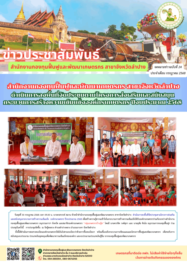 The post สำนักงานกองทุนฟื้นฟูและพัฒนาเกษตรกร สาขาจังหวัดลำปาง ดำเนินการลงพื้นที่จัดประชุมตามโครงการส่งเสริมเเละสนับสนุนกระบวนการสร้างความเข้มเเข็งองค์กรเกษตรกร ปีงบประมาณ 2568 appeared first on สำนักงานกองทุนฟื้นฟูและพัฒนาเกษตรกร สาขาจังหวัดลำปาง.