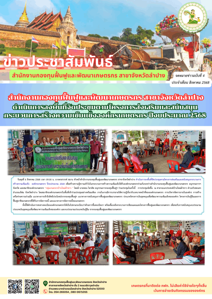 The post สำนักงานกองทุนฟื้นฟูและพัฒนาเกษตรกร สาขาจังหวัดลำปาง ดำเนินการลงพื้นที่จัดประชุมตามโครงการส่งเสริมเเละสนับสนุนกระบวนการสร้างความเข้มเเข็งองค์กรเกษตรกร ปีงบประมาณ 2568 appeared first on สำนักงานกองทุนฟื้นฟูและพัฒนาเกษตรกร สาขาจังหวัดลำปาง.