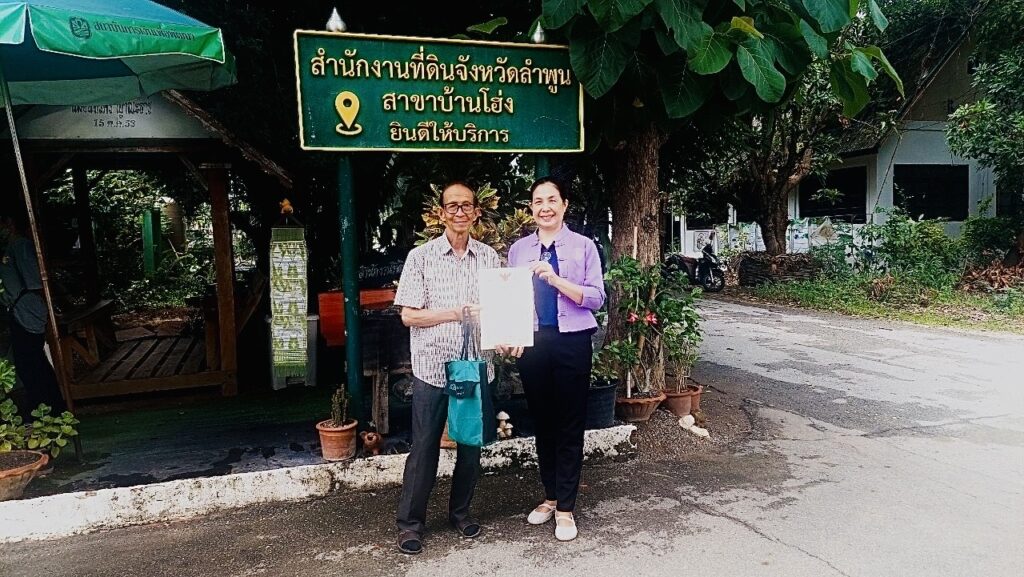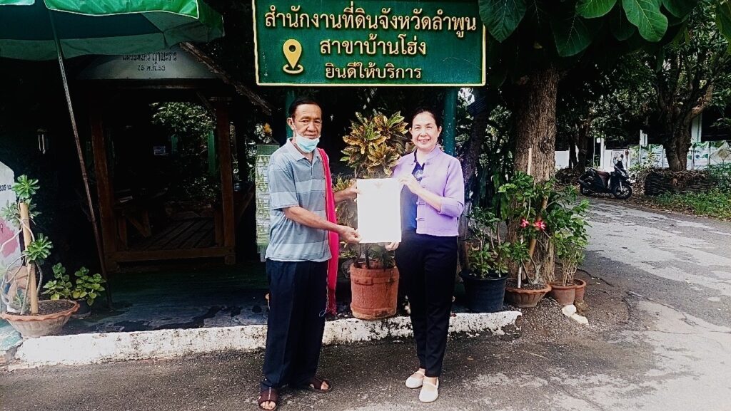 The post หัวหน้า กฟก.ลำพูน โอนกรรมสิทธิ์ และส่งมอบโฉนดที่ดินคืนให้เกษตรกร จำนวน 6 แปลง เนื้อที่ 8 ไร่ 1 งาน 87.20 ตารางวา ณ สำนักงานที่ดินจังหวัดลำพูน สาขาบ้านโฮ่ง appeared first on สำนักงานกองทุนฟื้นฟูและพัฒนาเกษตรกร สาขาจังหวัดลำพูน.