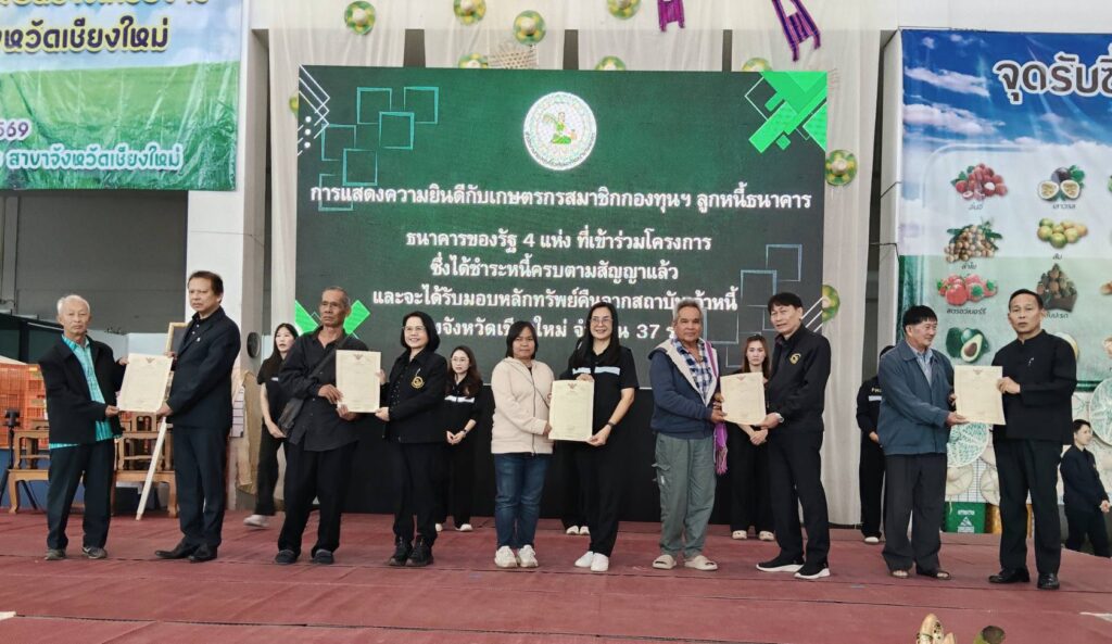 แก้ไขปัญหาหนี้สินให้เกษตรกร 36,755 ราย ชำระหนี้แทนรวม 11,852 ล้านบาท และรักษาที่ดินทำกินกว่า 197,840 ไร่
