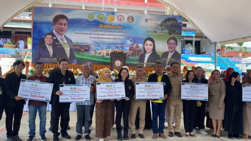 วันที่ 8 พฤศจิกายน 2568 ร.อ. ธรรมนัส พรหมเผ่า รองนายกรัฐมนตรี และรัฐมนตรีว่าการกระทรวงเกษตรและสหกรณ์ ลงพื้นที่ตรวจราชการในพื้นที่ภาคใต้ โดยมี นางวรรณี มหานีรานนท์ เลขาธิการสำนักงานกองทุนฟื้นฟูและพัฒนาเกษตรกร พร้อมด้วย นายทศพล วิชัยดิษฐ รองเลขาธิการ คณะผู้บริหาร หัวหน้าสำนักงานสาขาจังหวัดในกลุ่มบูรณาการที่ 11 คณะอนุกรรมการจังหวัด และเกษตรกรในพื้นที่ร่วมให้การต้อนรับอย่างอบอุ่น