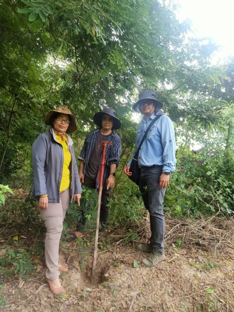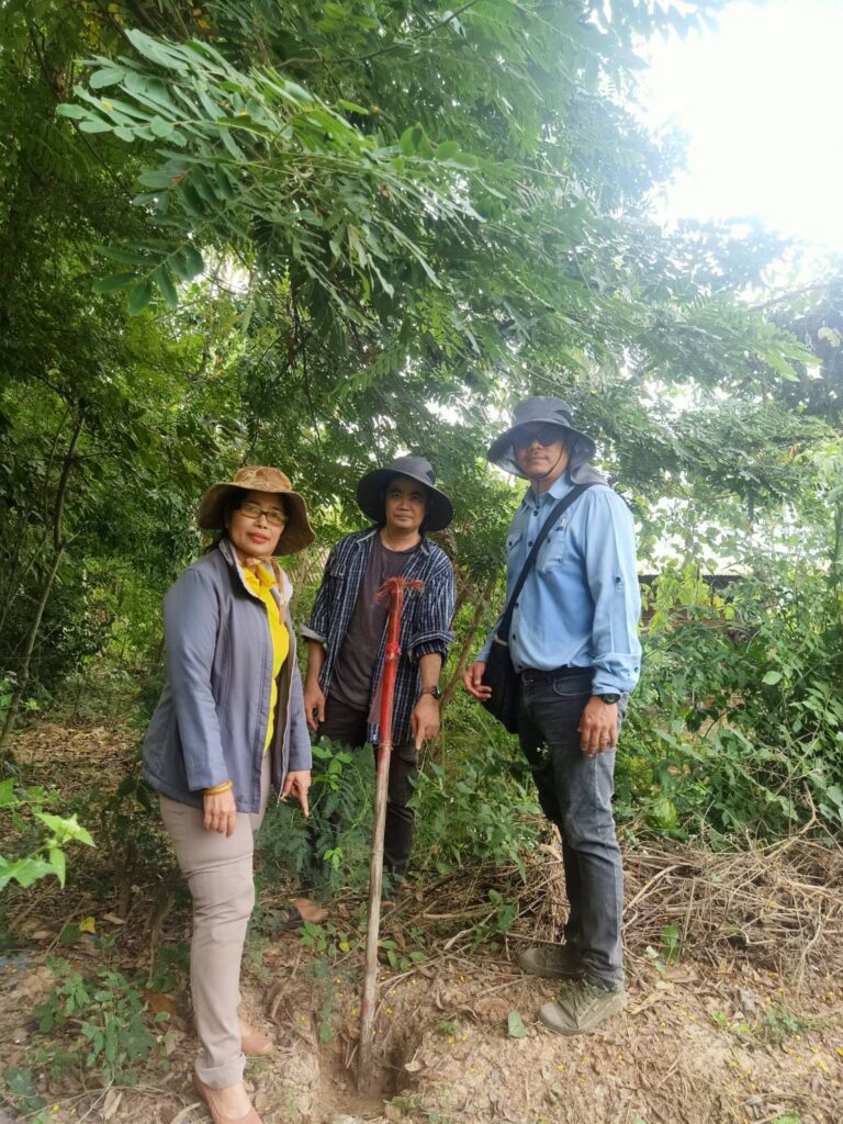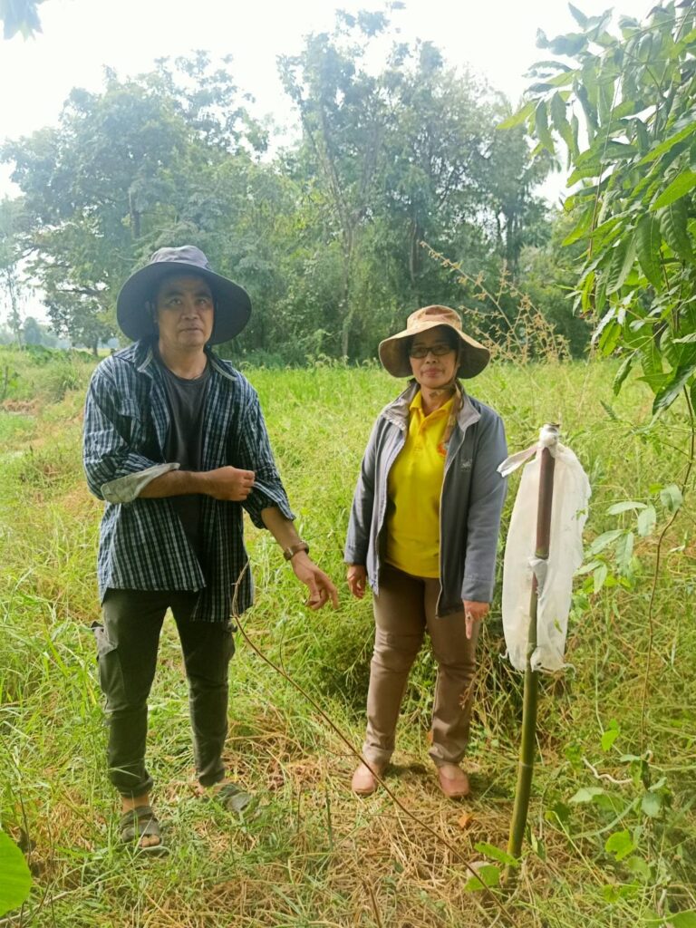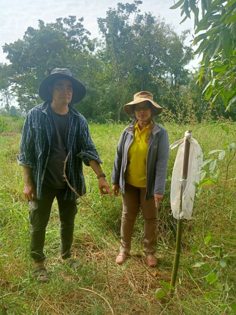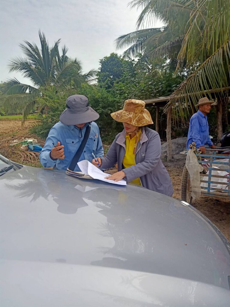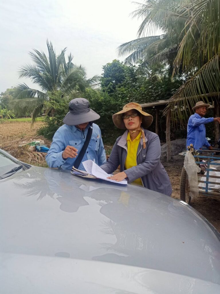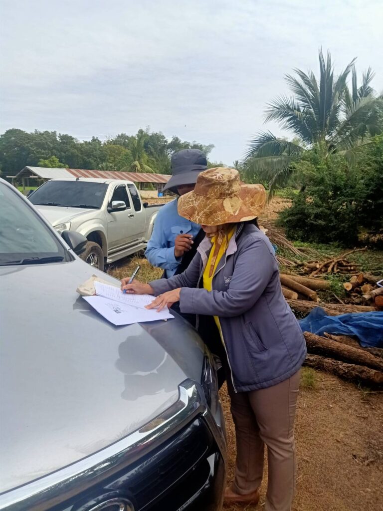 นางสาวกมนพรรณ สวัสดี หัวหน้าสำนักงานกองทุนฟื้นฟูและพัฒนาเกษตรกรสาขาจังหวัดสุโขทัย ลงพื้นการระวังชี้แนวเขตและลงชื่อรับรองเขตที่ดิน กรณีออกโฉนดที่ดินหรือหนังสือรับรองการทำประโยชน์ของเกษตรกร นายคมกริช เพ็ชรี่ ณ. ม.1 ต.ไกรนอก อ.กงไกรลาศ เป็นพื้นที่ข้างเคียงในการชี้แนวเขต