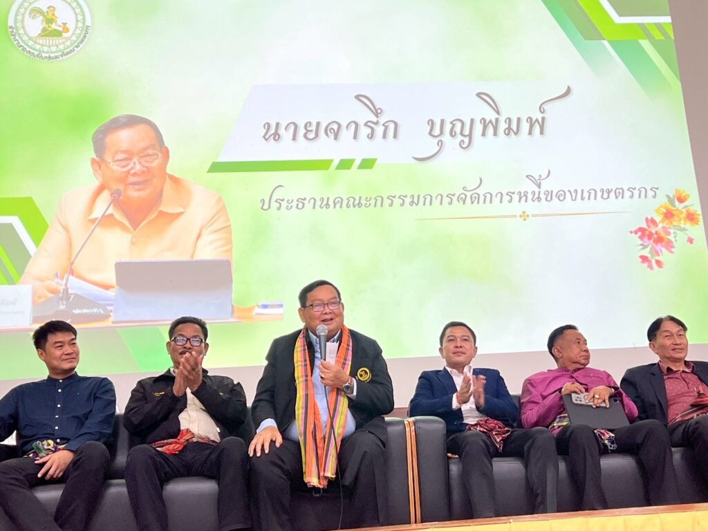 วันอาทิตย์ที่ 8 มิถุนายน 2568 เวลา 12.00 น. ที่หอประชุมคณะนิติศาสตร์ มหาวิทยาลัยราชภัฎศรีสะเกษ เลขาธิการสำนักงาน กฟก. และกรรมการผู้แทนเกษตรกร กรรมการบริหารฯ กรรมการจัดการหนี้ฯ พร้อมด้วยคณะผู้บริหารสำนักงาน กฟก. ทั้งส่วนกลางและส่วนภูมิภาค 7 จังหวัด หัวหน้าสำนักงานสาขาจังหวัดศรีสะเกษ ร่วมต้อนรับรองนายกรัฐมนตรีและรัฐมนตรีว่าการกระทรวงการคลัง (นายพิชัย ชุณหวชิร) ประธานกรรมการ กฟก. พร้อมคณะ ที่ร่วมเป็นเกียรติกิจกรรมโครงการ ประชาสัมพันธ์เชิงรุกให้กับองค์กรและเกษตรกรสมาชิก กฟก. จังจังหวัดศรีสะเกษ โดยมีผู้แทนองค์กรเกษตรกรจาก 177 องค์กรและเกษตรกรสมาชิกมากกว่า 650 คนให้การต้อนรับและรับฟังนโยบายจากประธานกรรมการ