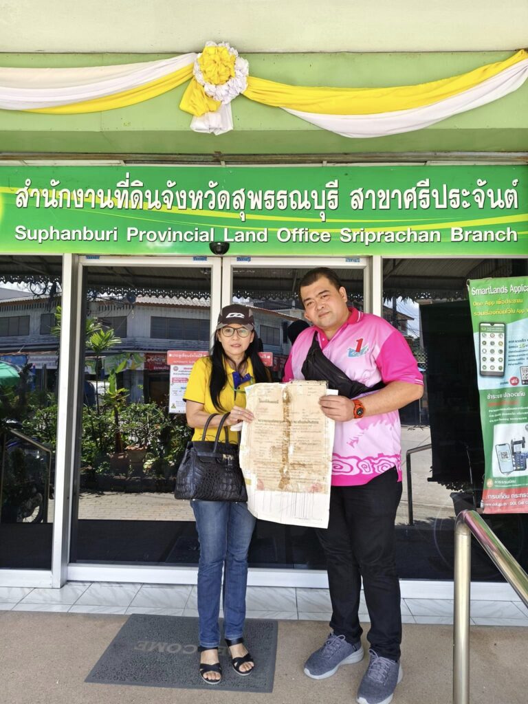 สำนักงานกองทุนฟื้นฟูและพัฒนาเกษตรกร สาขาจังหวัดสุพรรณบุรี โดยนางสาวรัชดา พงศ์ภูมิมาศ หัวหน้าสำนักงานสาขาจังหวัดพิจิตร ปฎิบัติงานแทนหัวหน้าสำนักงานสาขาจังหวัดสุพรรณบุรี มอบหมายให้นายปฐมศักดิ์ ผลิเจริญสุข ทำการโอนกรรมสิทธิ์หลักประกันมาเป็นของกองทุนฯ หลังจาก ที่กองทุนฯ ชำระหนี้แทนให้เจ้าหนี้เดิมโดยเจ้าหนี้เดิมคือสถาบันเกษตรกร สหกรณ์การเกษตรศรีประจันต์ จำกัด และเกษตรกรต้องทำสัญญาเช่าซื้อกรรมสิทธิ์คืนไปจากกองทุนฯ ในวันนี้เป็นการโอนกรรมสิทธิ์หลักประกันจำนวน 1 แปลง ของเกษตรกร 1 ราย เนื้อที่ 11 ไร่ 1 งาน 40 ตารางวา ณ สำนักงานที่ดินจังหวัดสุพรรณบุรี สาขาศรีประจันต์