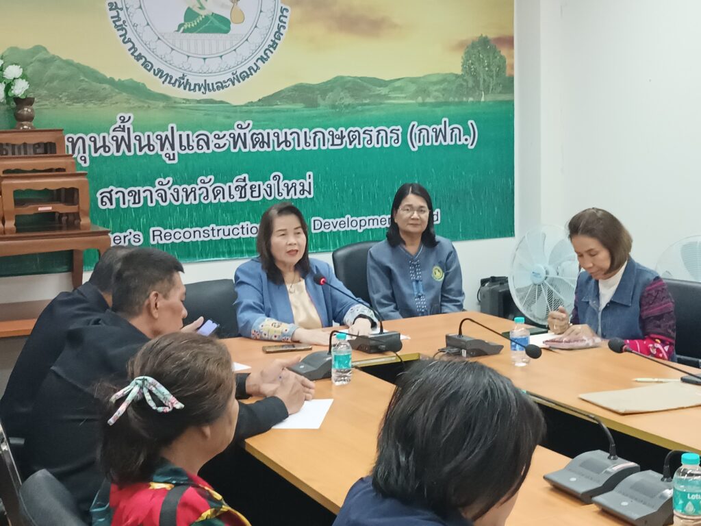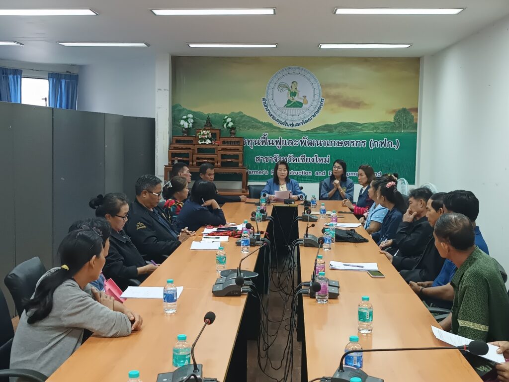 วัน พุธ ที่ 25 กันยายน 2567 นางพรสวรรค์ สมาน หัวหน้าสำนักงานกองทุนฟื้นฟูและพัฒนาเกษตรกร สาขาจังหวัดเชียงใหม่ พร้อมด้วย นางสุพัตรา ผ่อนจตุรัส ประธานอนุกรรมการฯ และคณะอนุกรรมการ สาขาจังหวัดเชียงใหม่ ร่วมประชุมโครงการสนับสนุนการพัฒนาแผนหรือโครงการฟื้นฟูและพัฒนาเกษตรกร ตามองค์กรกลุ่มเป้าหมาย ณ สำนักงานกองทุนฟื้นฟูและพัฒนาเกษตรจังหวัดเชียงใหม่